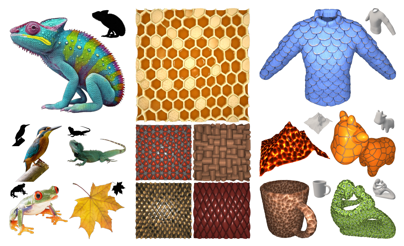 - 3D 网格纹理:利用 Mesh NCA 在任意拓扑的 3D 模型表面合成纹理。