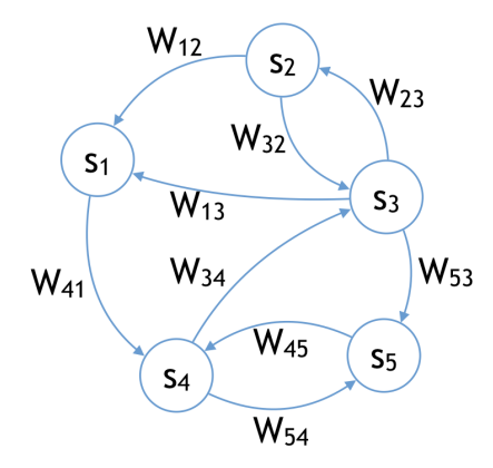 与Hopfield模型不同,这里的连接权重 $W_{ij}$ 不需要是对称的。模型是一个有向图。
