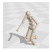 Figure 2: Locomotion tasks illustrated from left to right: Humanoid (17-DoF), Walker2d (6-DoF), and Hopper (3-DoF).