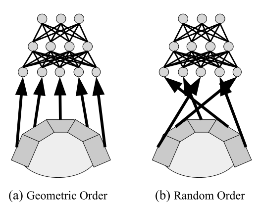 图 1: (a) 具有几何排列的输入。(b) 传统 ANN 将其视为无序集合。这导致算法必须独立学习每个连接,无法发现空间相关性。
