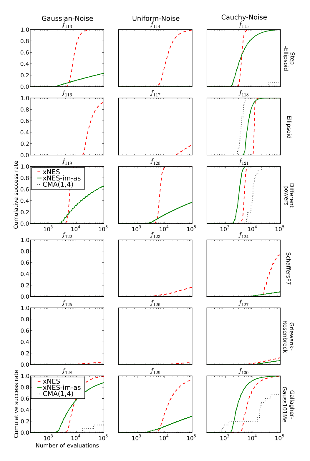 ing rates online. Empirically we found that using both importance mixing and adaptation sampling yields highly performant results on the standard benchmarks. In addition, restart strategies substantially improve success probabilities on multi-modal functions and noisy benchmarks, clearly outperforming alternative approaches. Last, the exponential parameterization is crucial for maintaining positive-definite covariance matrices, and the use of the natural coordinate system guarantees computational feasibility.