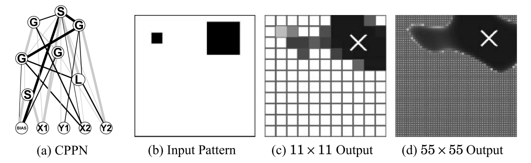 $$ w_{ij} = CPPN(x_i, y_i, x_j, y_j) $$
