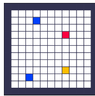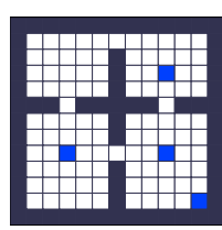 The random grid worlds are almost the same as the tabular grid worlds except that object locations are randomised within a lifetime. More specifically, object locations are randomly determined at the beginning of each episode, and objects re-appear at random locations after being collected. Due to the randomness, the state space is exponentially large, which requires function approximation to represent an agent. The observation consists of a tensor {0, 1} N×H×W , where N is the number of object types, H × W is the size of the grid.