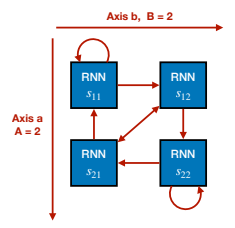 We now introduce variable sharing (reusing W) into the RNN by duplicating the computation along two axes of size A,B (here A=B, which will later be relaxed) giving $s\in\mathbb{R}^{A\times B\times N}$ . For $a\in\{1,\ldots,A\},b\in\{1,\ldots,B\}$ we have