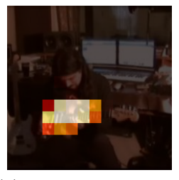 should be low thus making the entire score map low, indicating, as desired, there is no object which makes the input sound. In essence, the audio representation forms a filter which "looks" for relevant image patches in a similar manner to an attention mechanism.